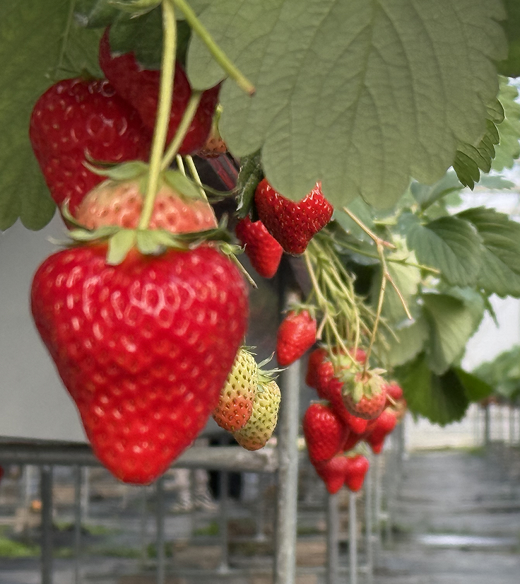 采摘大棚矗立在滕頭景區旁,顯得格外矚目,大棚里一縱縱翠綠的葉子上冒出了無數個鮮紅欲滴的小果實,透著勃勃生機,湊近一聞,濃郁的果香撲面而來。此時大家被眼前大大小小、顏色誘人的草莓吸引,忍不住的將酸酸甜甜的草莓摘了直接丟進嘴里,甜甜的草莓汁在嘴里、心里流淌,大家一邊品嘗一邊采摘,臉上洋溢著燦爛的笑容。